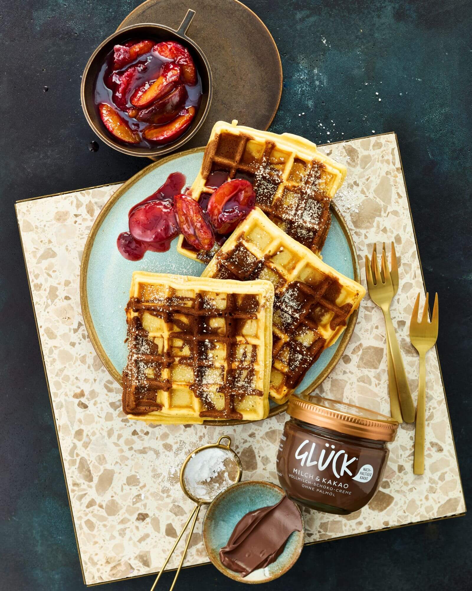 Marmorierte Sahnewaffeln mit Zwetschgenröster
